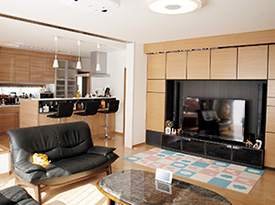 「レーザーディスクの時代から、ホームシアターが好きでしてね。今回は、100インチのスクリーンをテレビキャビネットに収められるよう、特別に施工してもらいました。柔軟な対応に満足しています」。