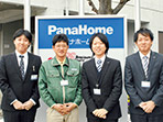 小林逸樹(設計)・稲毛弘樹(工事)・竹中輝明(営業)・前田 収(外構設計)(写真左から)