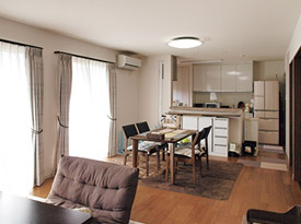 M様のご新居は、昨年末に完成。四季を通じての住み心地をお聞きすると、ご主人からは「夏は涼しく冬は暖かく、とても快適です」との感想が…。一方、奥様は「使い勝手も良く、希望がしっかり叶いました。隣に住んでいる母も、『暖かくてとっても居心地が良い』と長居しています」。