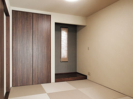 また、和室は、あえて玄関側に扉を設けず、リビング側からのみ出入りするようにされました。「お客様を迎えた時、部屋が玄関に繋がっていると落ち着かないのではないかと考えたんです」。