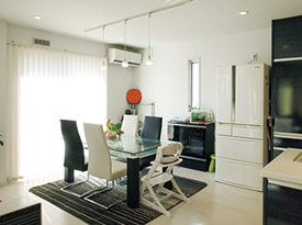 ご新居のプランニングにあたっては、奥様のお姉さまがT様を強力にサポート。「自身の体験から、住まいづくりのポイントを的確にアドバイスしてくれたんです。例えば、『リビング階段にして良かった。でも、暖房効率が悪くなるので、扉を設けた方がベター』とか、『パントリーを設ければ、キッチンが使いやすくなり、すっきりと片付く』とか…。おかげで、初めてなのに2軒目のように要望を出すことができ、理想の住まいを実現できました」と奥様。