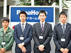 宮脇昇吾(工事)・小笠聡太(営業)・髙村 剛(設計)・三村 努(外構設計)(写真左から)