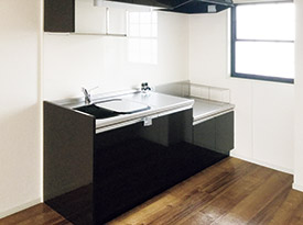 『エーデルハイム』の間取りは2DK、コンパクトなダイニングキッチンに和室と洋室というものでした。そこで、パナホームでは、現在のトレンドである1LDKタイプへの間取り変更を中心に、ウォークインクローゼットの設置、キッチンと洗面の入れ替え、トイレのリニューアルなどを実施しました。