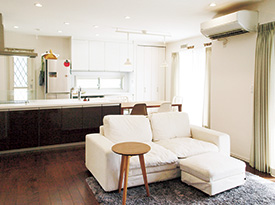 昨年末に完成したM様のご新居では、明るいLDKを中心に、心地よい時間が流れていきます。