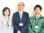 北尾宝子(設計)・清水成人(営業)・木村典嗣(工事)(写真左から)