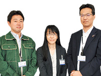 西嶋佳樹(工事)・加藤千佳(設計)・山田浩之(営業)(写真左から)