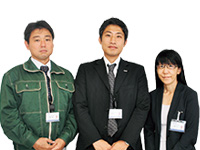 西嶋佳樹(工事)・大濃佳和(営業)・加藤千佳(設計)(写真左から)