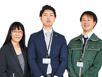 加藤千佳(設計)・池上恭平(営業)・山下晃平(工事)(写真左から)