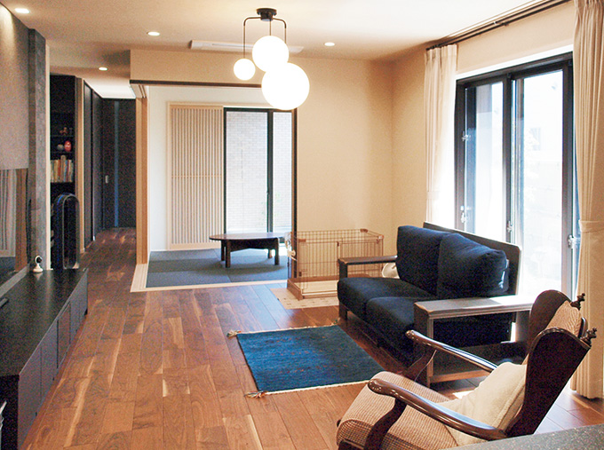 「世帯間のプライバシーも守られ、同時に気軽に行き来ができて、とても便利」とご主人。「まさに、理想の付かず離れず。適度に気配が感じ合える、絶妙の距離感ですね」と奥様。M様のご新居は、ご家族全員にとって、最高の二世帯住宅となりました。