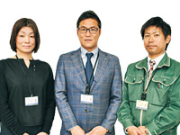 宮本由美(設計)・穴手義史(営業)・木村典嗣(工事)(写真左から)