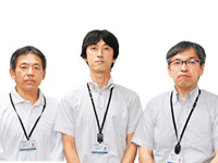 福井 健(工事)・村岡陽介(営業)・三田敦士(設計)(写真左から)