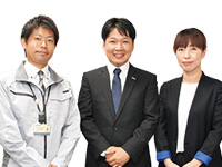 木村典嗣(工事)・松井 隆(営業)・井上玲子(設計)(写真左から)