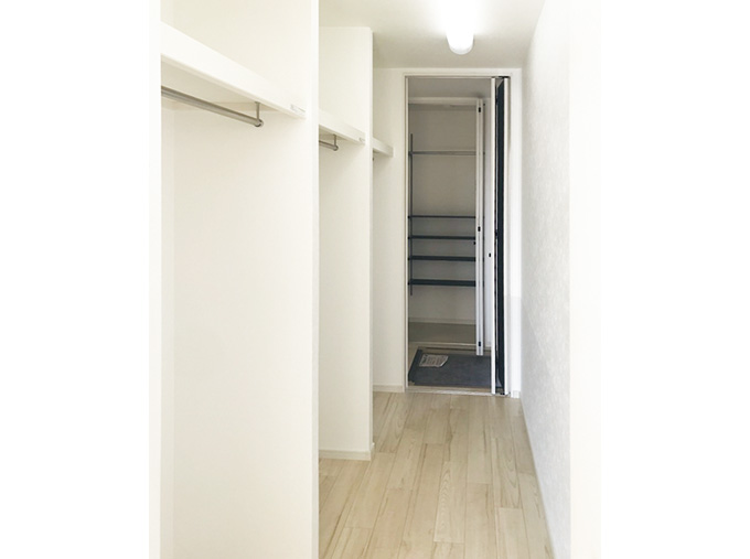 「パナホーム兵庫から提案されたのは、2戸のうちの1戸を、玄関と洗面室、ウォークインクローゼットをダイレクトに繋ぎ、帰宅してすぐに手を洗ったり着替えたりできるようにするというプランでした。B棟の時はLDKと収納の動線に重点を置いて計画されていましたが、今回はコロナ対策を目玉にしながら、収納や機能性についてもよく考えられていましたね」。
