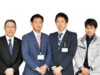 井上朝巨(営業)・前田 収(外構設計)・三村 努(設計)・宮脇昇吾(工事)(写真左から)