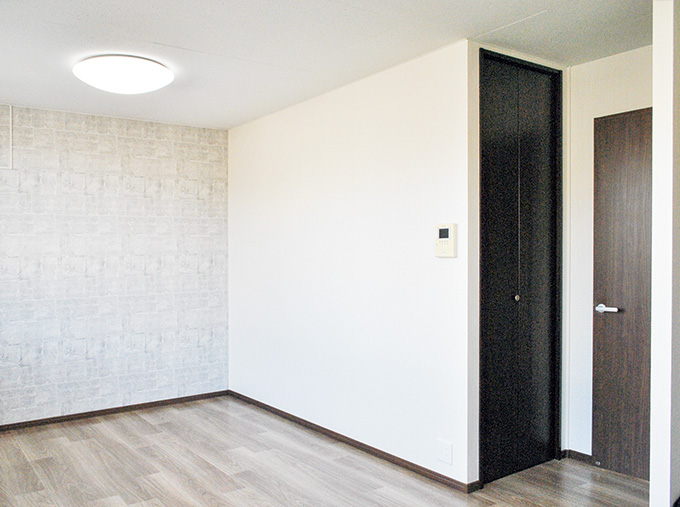 一方、インテリアは、おしゃれなアクセントクロスをポイントに用いたり、全体にシックな色調へ統一するなど、流行のコーディネートへと変更しました。