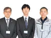 三田敦士(設計)・村岡陽介(営業)・福井 健(工事)(写真左から)