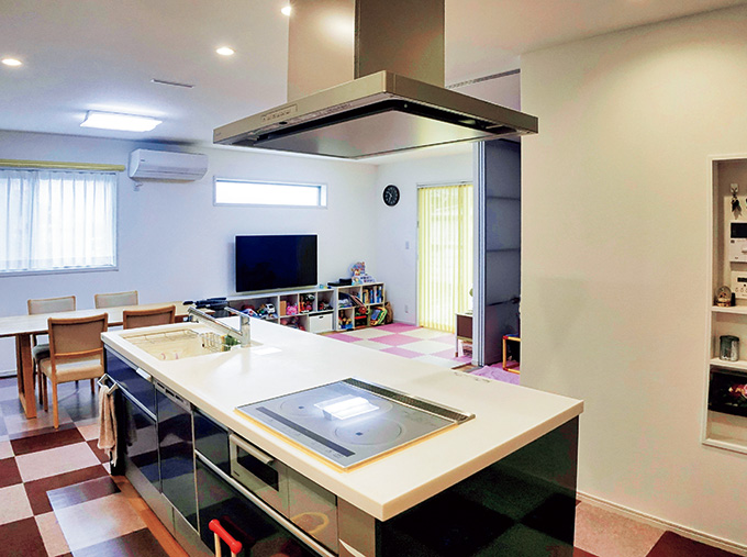 南側の窓から陽光が降り注ぐ広いLDKを、お子様達が元気に駆け巡り、それをご夫妻が笑顔で見守られる…。そんなT様宅の日常は、まさに幸せそのものです。