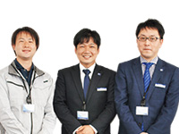 山下晃平(工事)・松井 隆(営業)・上田 渉(設計)(写真左から)