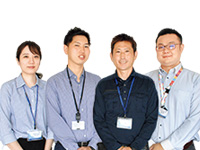 池本和香奈(設計)・池上恭平(営業)・森本智伸(工事)・嶋田 樹(外構設計)(写真左から)