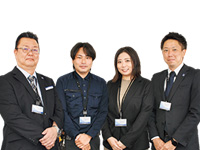 川西康裕(営業)・宮脇昇吾(工事)・角谷真理子(設計)・三村 努(外構設計)(写真左から)