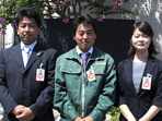 井上 友明(営業)・西嶋 佳樹(工事)・橋元 久美子(設計) (写真左から)