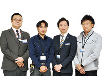 嶋田 樹(外構設計)・宮脇昇吾(工事)・南木沢哉(営業)・三村 努(設計)(写真左から)