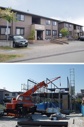 「車庫や倉庫をアパートに建て替えれば、税金対策など色々と有利なことがわかり、建築を決意しました」。