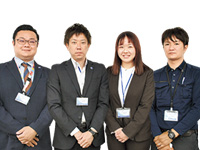 嶋田 樹(外構設計)・三村 努(設計)・大塚麻由(営業)・岡松孝太(工事)(写真左から)