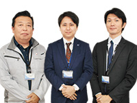 大道 忠(工事)・大上真矢(営業)・野村亮二(設計)(写真左から)