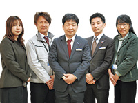 石川絵理(設計)・岡松孝太(工事)・松井 隆(営業)・大前大悟(営業)・加藤千佳(設計)(写真左から)
