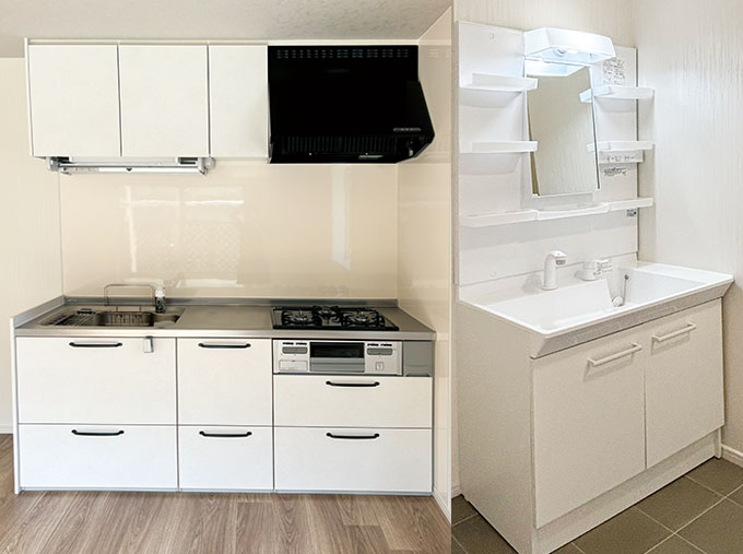 今回のリノベーションは、2DKから1LDKへの間取り変更と水回り設備の入れ替えを中心に、ほぼ全面に渡りました。