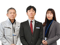 福井 健(工事)・村岡陽介(営業)・井上穂香(設計)(写真左から)