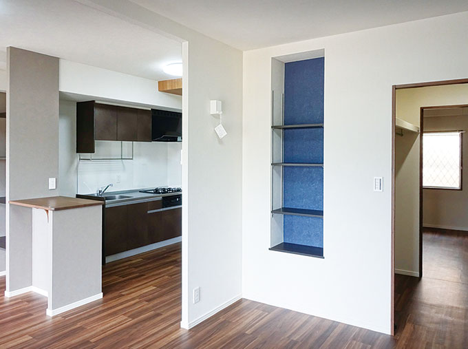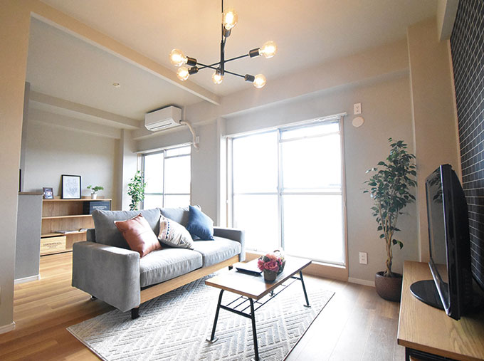 また、キッチン・洗面・トイレを入れ替え、エアコン等の設備も一新。加えて、間仕切り扉や収納の造作などにもこだわり、意匠性を高めました。
