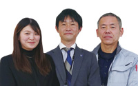 中西美紗希(設計)・小林龍広(営業)・福井 健(工事)(写真左から)