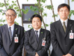 清水 成人(工事)・目木 数也(営業)・三田 敦士(設計) (写真左から)