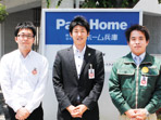 上田渉(設計)・門幸良(営業)・友藤和也(工事)(写真左から)