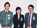 濵田孝司(工事)・北尾宝子(設計)・土井慎吾(営業)(写真左から)
